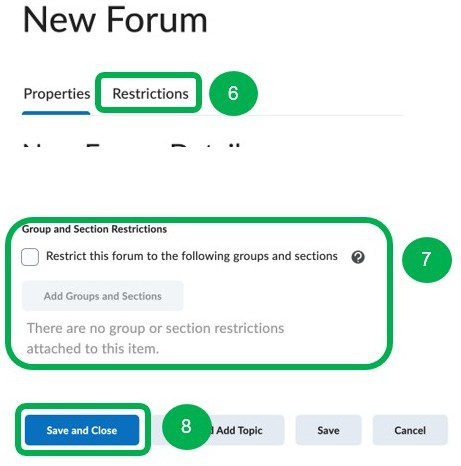 6. Click on the Restrictions tab to set Availability dates. Note: You can skip steps 6-7 if you prefer to set restrictions on individual topics.