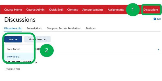 1. In your Brightspace course, click on Discussions in the Navigation Bar.