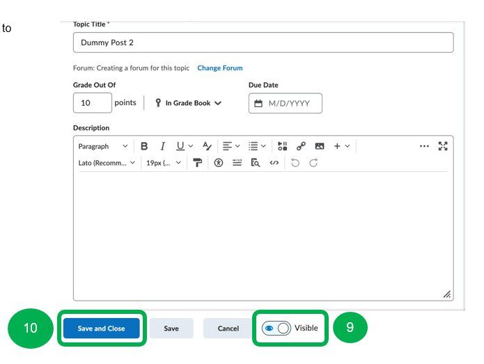 9. Click the toggle button to make the topic Visible